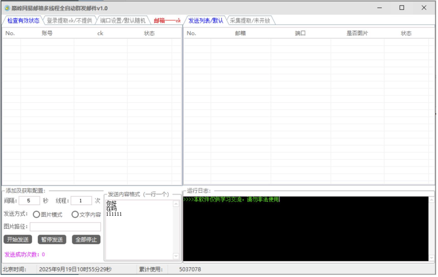 需要ck操作,可以快速发送邮件,省去手动繁琐步骤。 软件仅供交流学习使用,没有任何其他义务服务。