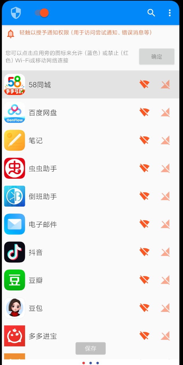 应用网络锁可以阻止或允许一个或多个应用程序使用网络。