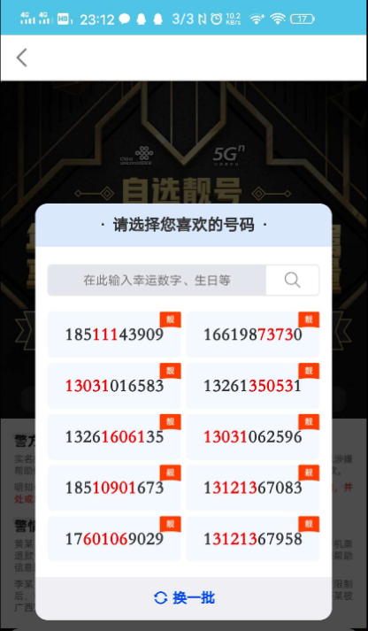 首页 > 软件仓库 > 手机靓号申请助手1.0可以选全国各地市面上主流卡种,联通跟移动都可以自己选靓号