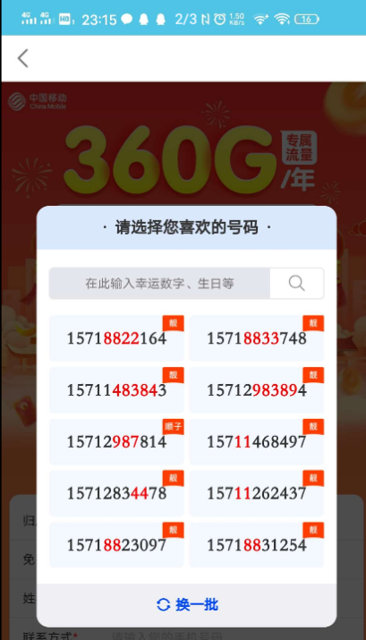 手机靓号申请助手1.0可以选全国各地市面上主流卡种,联通跟移动都可以自己选靓号
