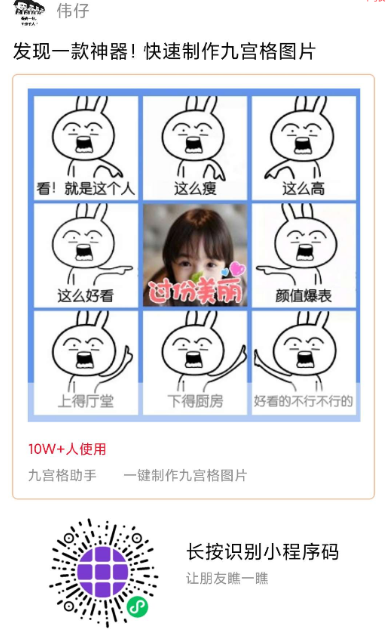【使用方式】:直接打开微信小程序搜索“九宫格助手” 或者用微信扫描下方的小程序码哦