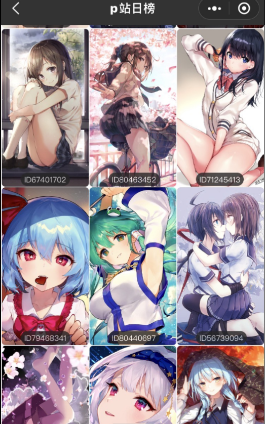 一个以P站美图为主题小程序,还有p站日排行榜在更新,真的每天都更新,每张图都是人工精心挑选的,二次元爱好者的浮力,访问不了pixiv的可以看看,提供原图下载贼给力,分类超多。