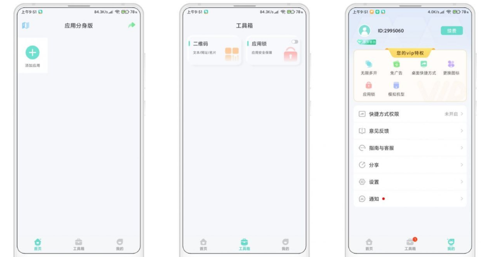 【使用说明】:一个非常好用的应用多开工具,有了这个工具之后,你的手机将突破安卓系统的束缚,可以同时在手机上将同一款应用生成多个,让你可以同时在手机上运行多个微信、扣扣、抖音、微博等等应用,每一个应用的使用互不影响,解锁会员