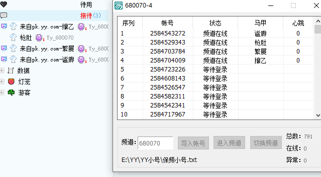 因不想扰乱YY市场,就把功能隐藏了,上号速度也设置慢了些,但不影响使用。可以试一下~