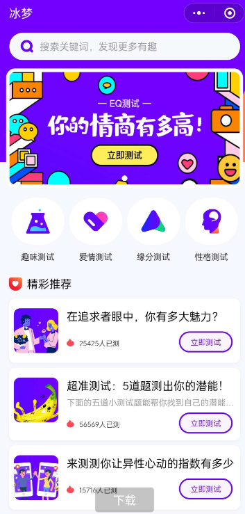 免费无广告心理测试,非常好看的UI界面,没有广告马上知道测试结果,超多测试题