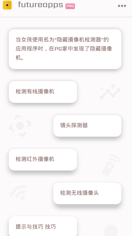 一键检测、快速分析,您手机上的防偷拍专家,保护您的出行投宿隐私安全。
