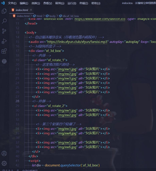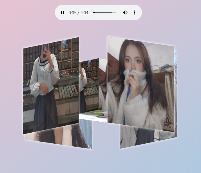 最近在抖音刷某些程序员用代码给自己女朋友写3D立体相册,然后我就自己动手做了一份!!!这个效其实并不难做主要就是用到了css的透视调节下x,y,z轴然后做个循环动画效果就行了!(js监听点击事件可加可不加)
