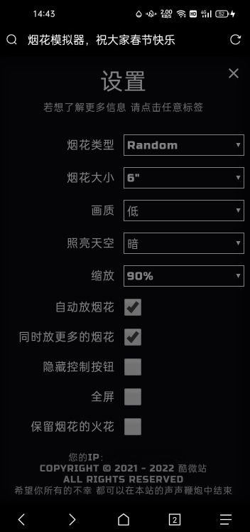 现在过年烟花管的松了点但像一线城市包括我在的新一线城市不让放烟花,就用这个来模拟放烟花吧