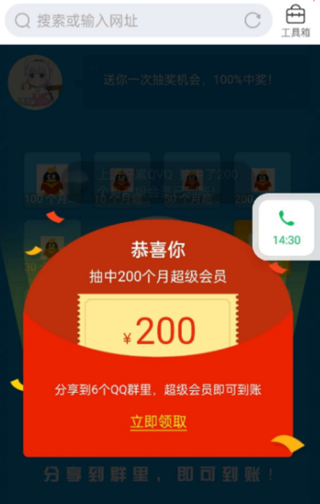 客户抽中扣扣会员,提示需要分享到6个群后才能领取,